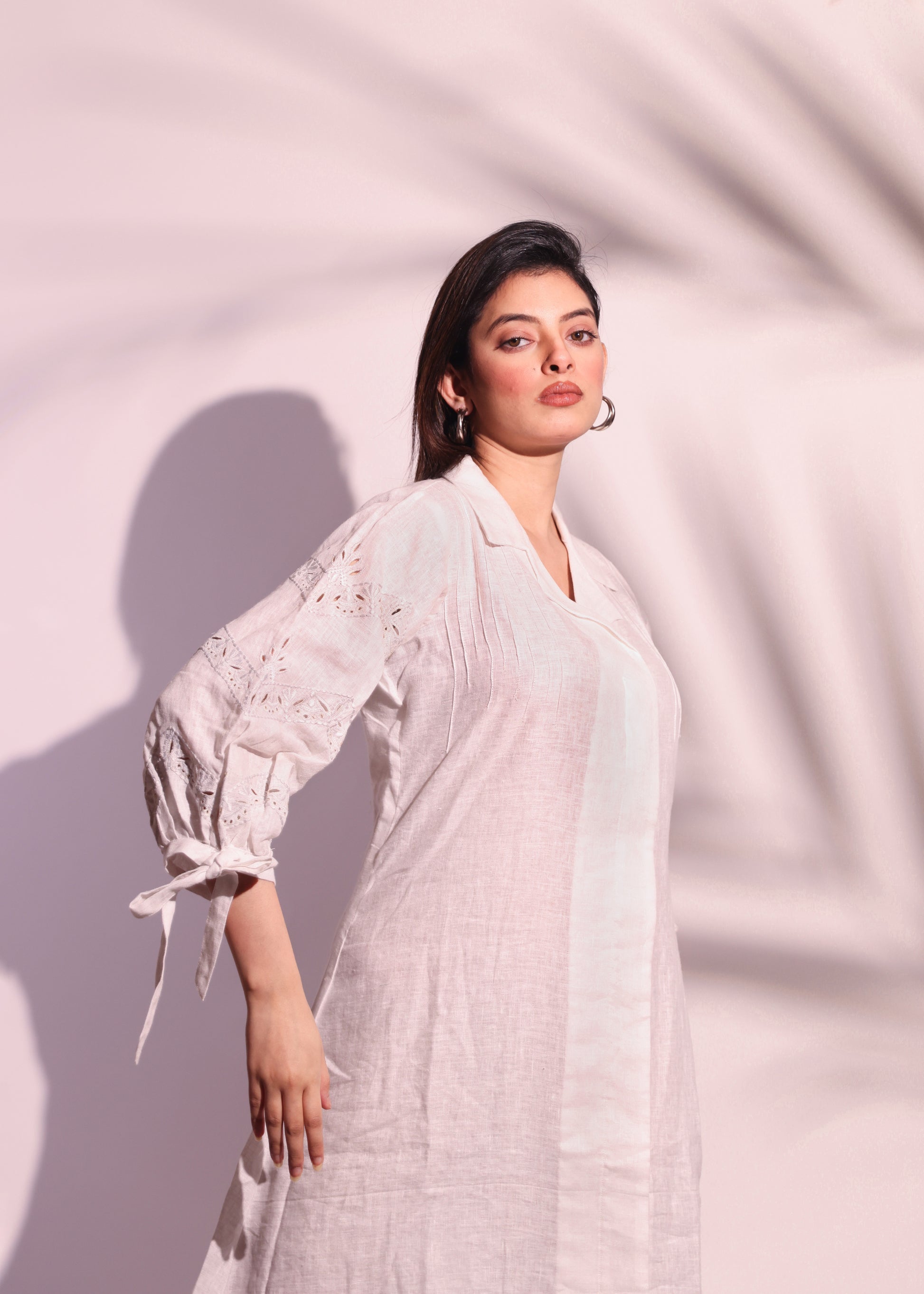 CUTWORK A-LINE FROCK WITH BALLOON SLEEVES