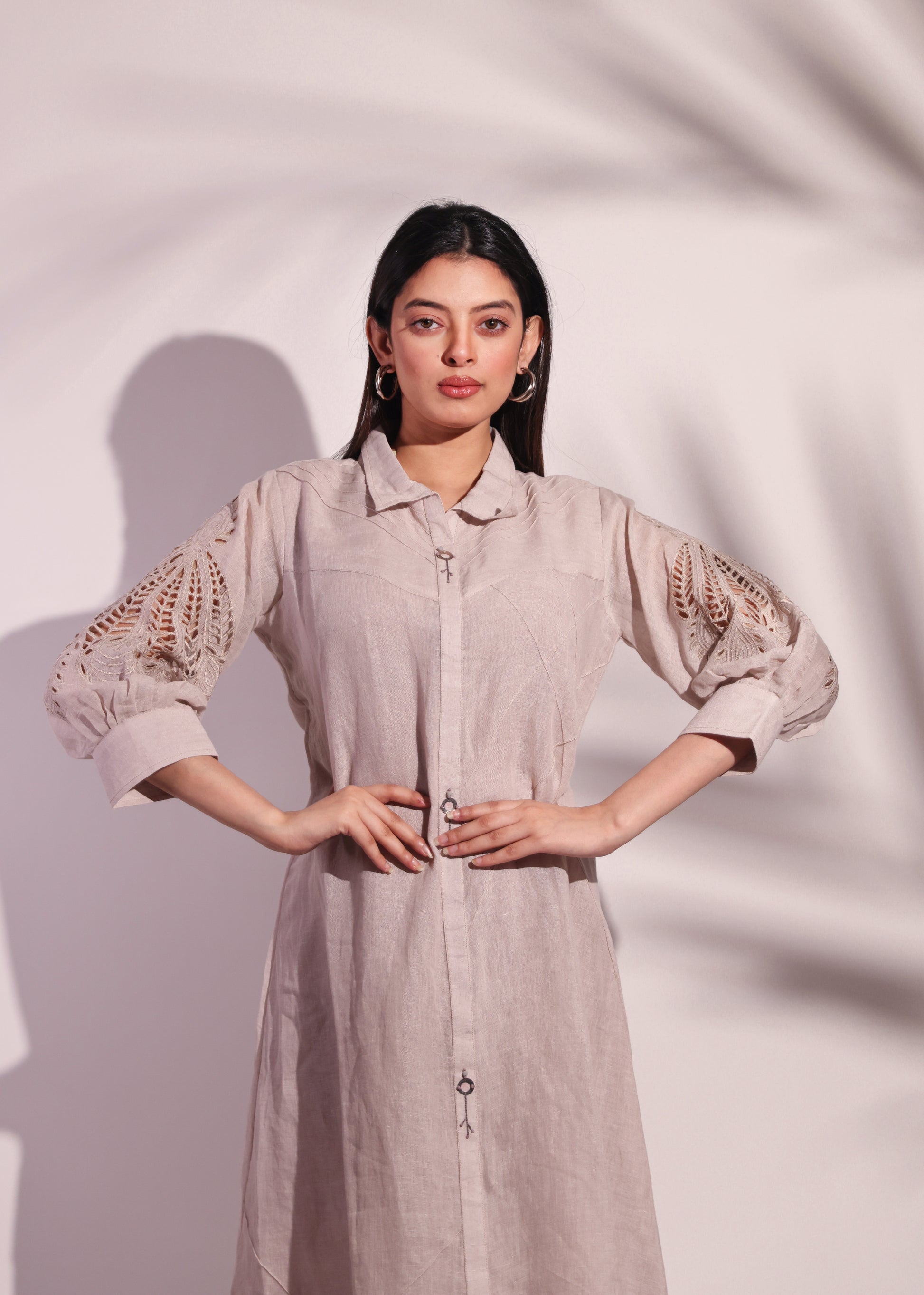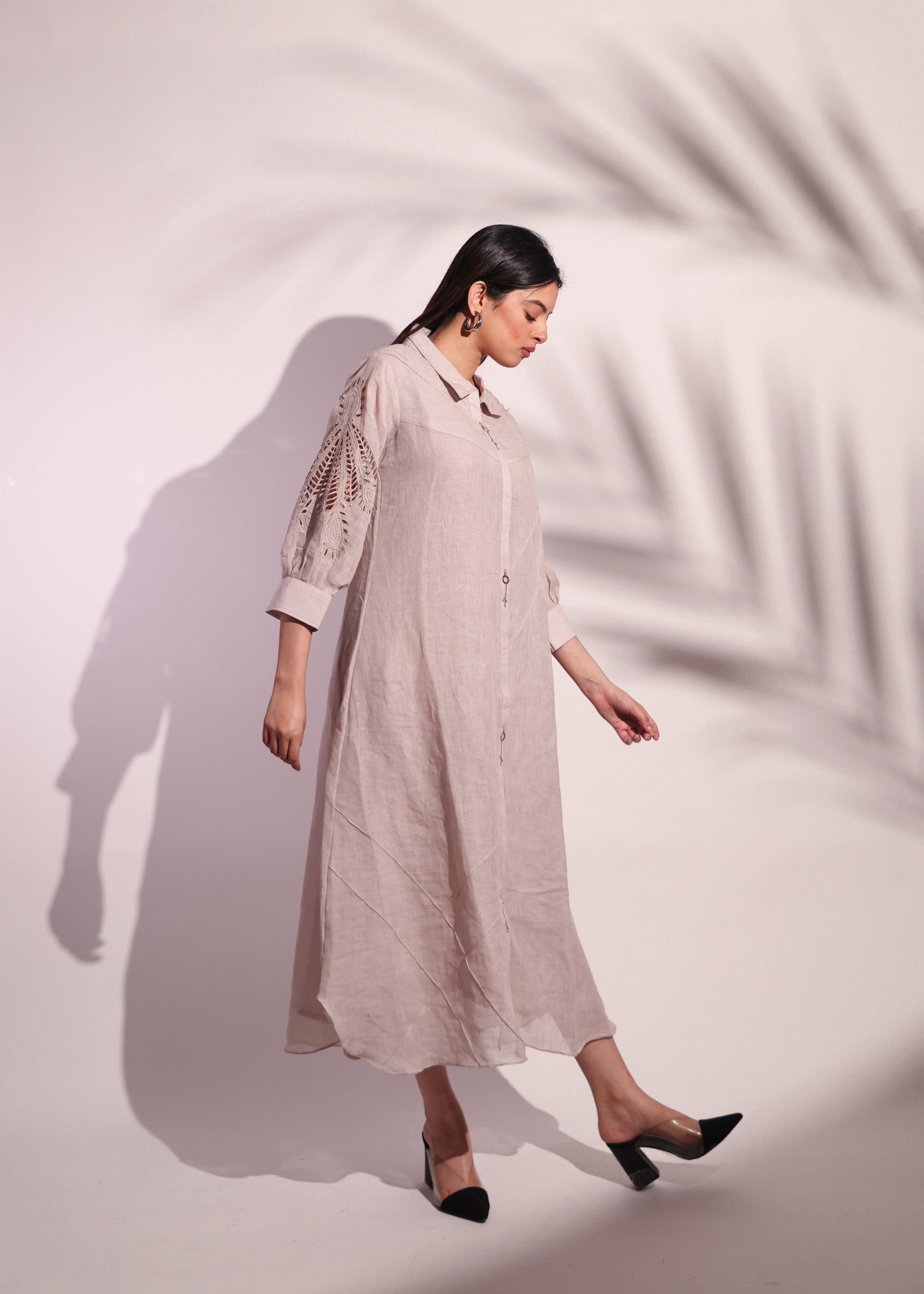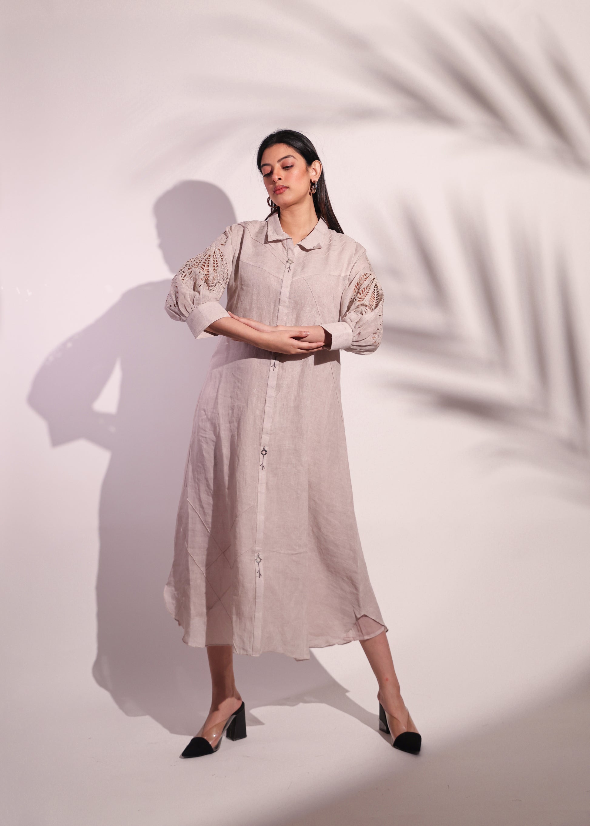 LUXURY A-LINE LINEN FROCK WITH SHIRT COLLAR