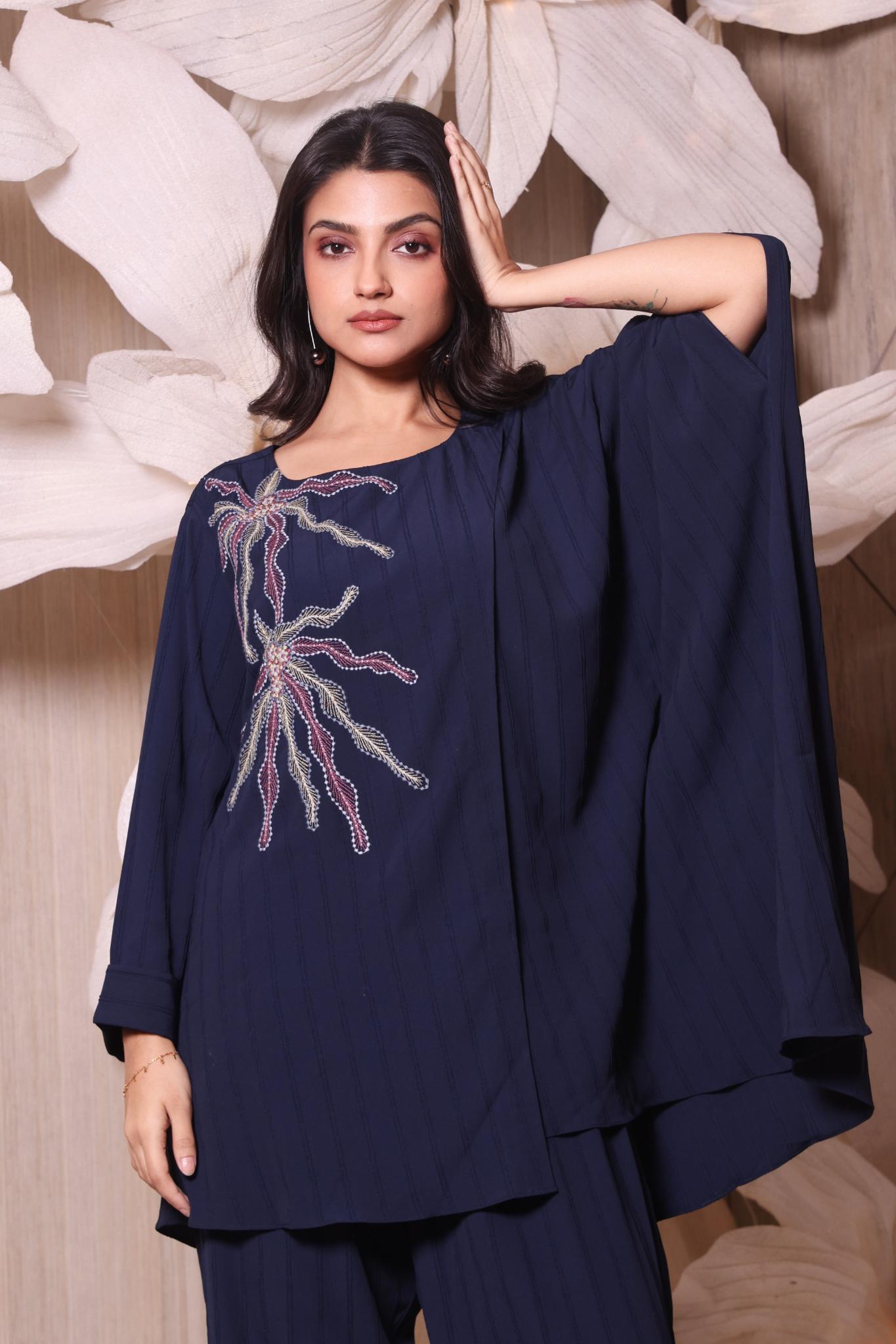 Tailored elegance meets everyday sophistication in this beautifully crafted set, featuring a tunic and straight pants.
