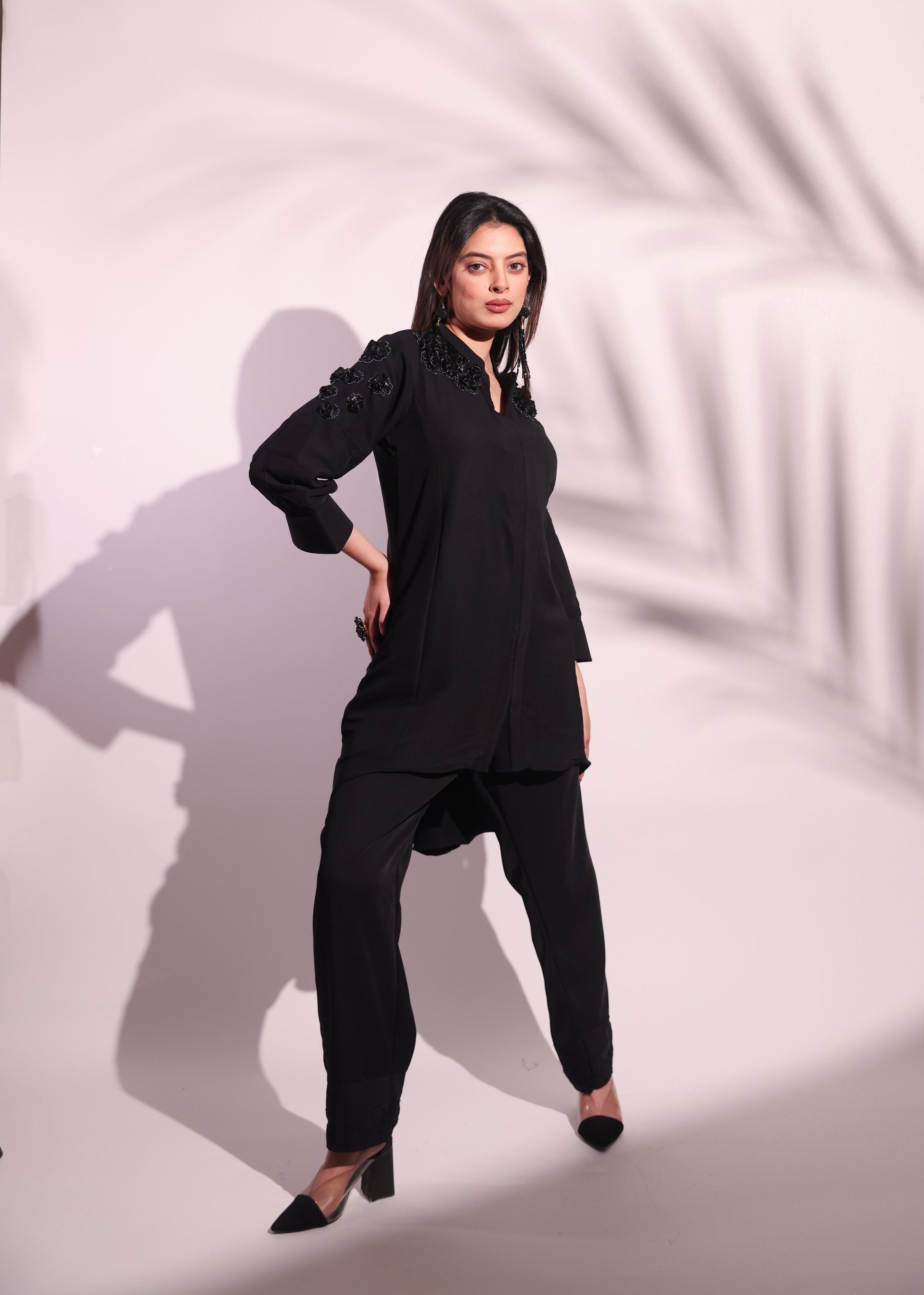 TISSUE-EMBOSSED FLOWER EMBROIDERED CO-ORD SETS
