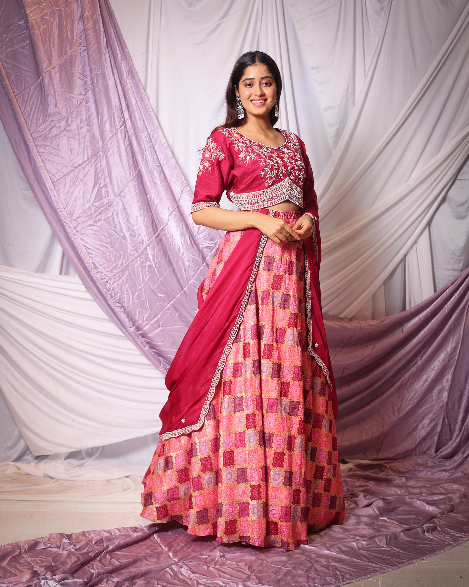 - Design: This enchanting set features a digital print Banarasi skirt, an embroidered blouse, and a coordinating dupatta. The combination exudes timeless elegance and sophistication, perfect for those seeking to make a statement with grace and poise.